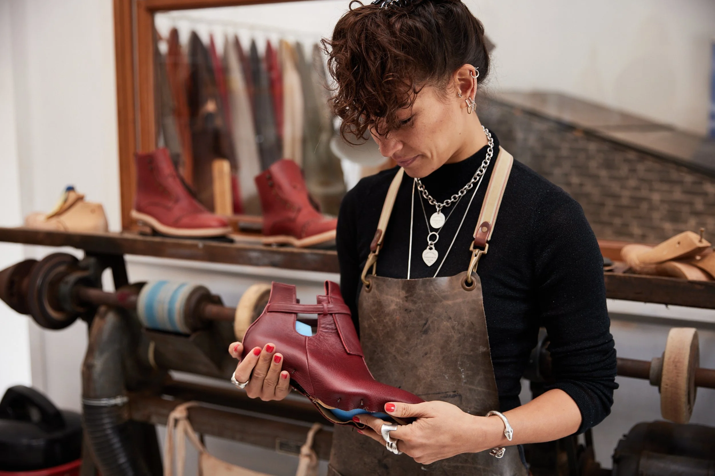So, I chose the safe way and studied economics in Germany. During that time, I lived around the corner from a shoemaker’s workshop. The shop was stacked from top to bottom with leather, there were a few machines in the workshop and it was so tiny, there was barely room for two people. I was intrigued by the craft but the designs I saw in the window were very traditional, nothing extraordinary. I thought to myself, ‘if you could only make shoes, you could make a change and create something more modern and edgy.‘ So one day I walked in and asked the shoemaker if he offered apprenticeships. At first, he said no but I left my number anyway and after a few weeks, he called and said, “You know what?! It doesn’t happen every day that a young woman walks in and wants to learn this dying craft, so let me teach you.” I learned the basics of small leather work from him but the actual process of shoemaking took too long for my liking. I’m quite impatient and by the time I had finished my studies, I decided to find myself a proper job.